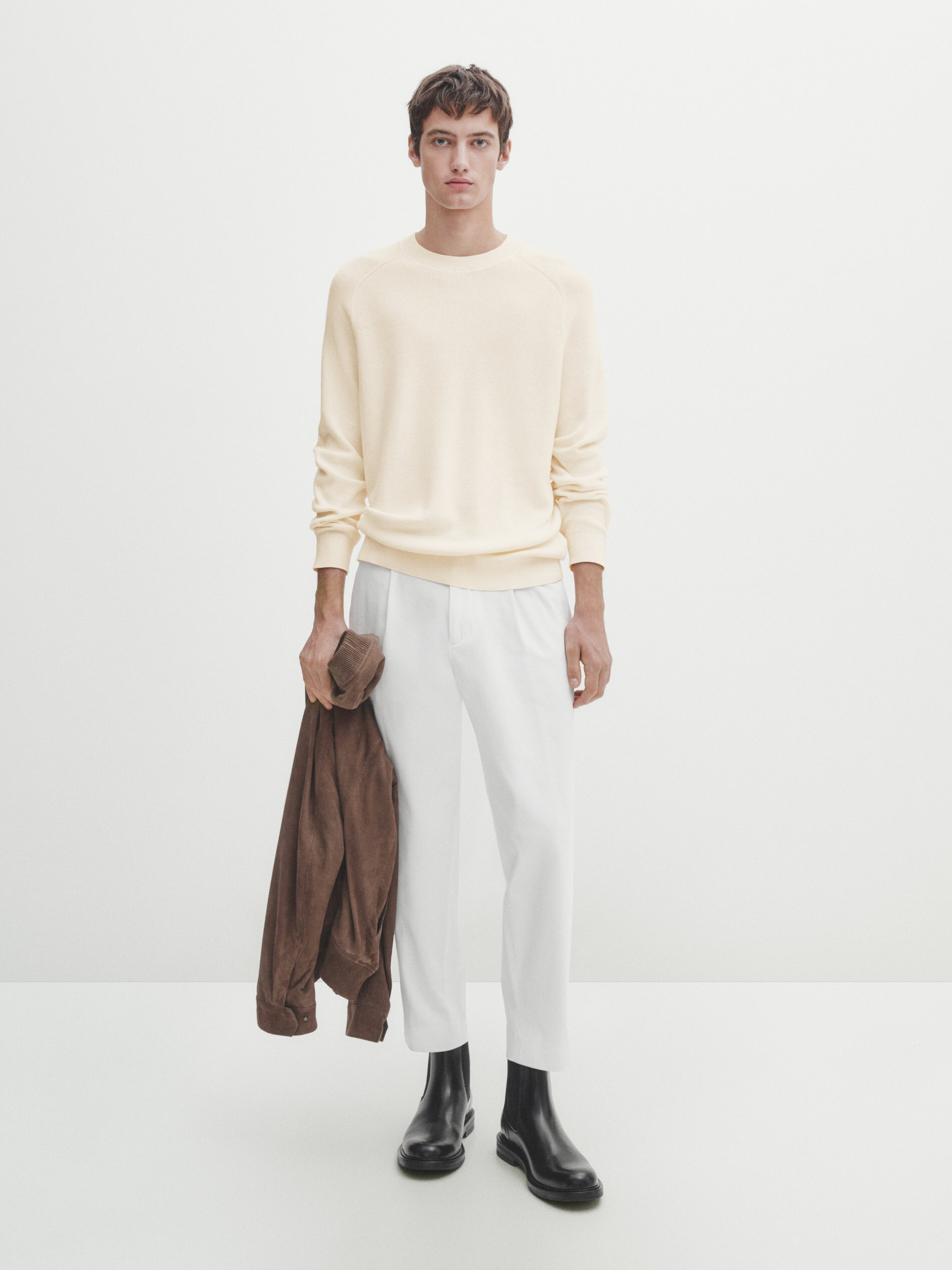 Textured Knit Crew Neck Sweater Massimo Dutti